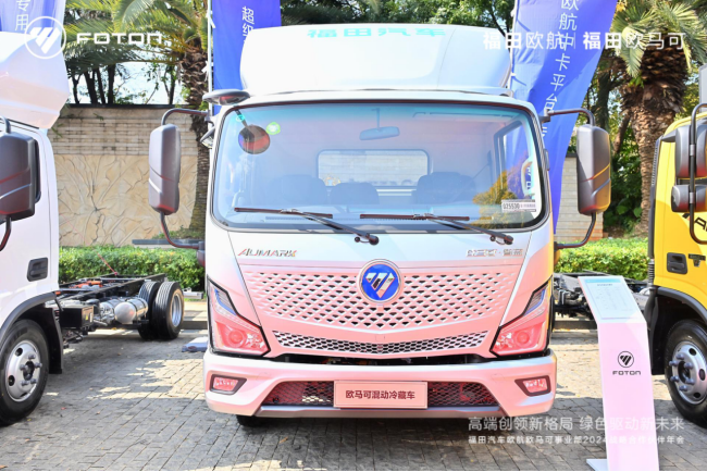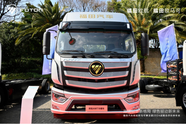 本次活動中,歐航AMT冷藏車、歐馬可ES1純電冷藏車、歐馬可HS1混動冷藏車等多款重磅新品亮相。歐航AMT冷藏車產品針對城市周邊的冷鏈運輸需求打造而來,整車匹配全新康明斯F4.5動力,最大馬力升級到240馬力,最大扭矩提升到了850N·m,配合傳動效率99.7%的采埃孚自動擋變速箱產品,起步有勁加速快、油耗更低,更舒適,為城市周邊的冷鏈運輸帶來更高效、更高價值的運輸裝備。