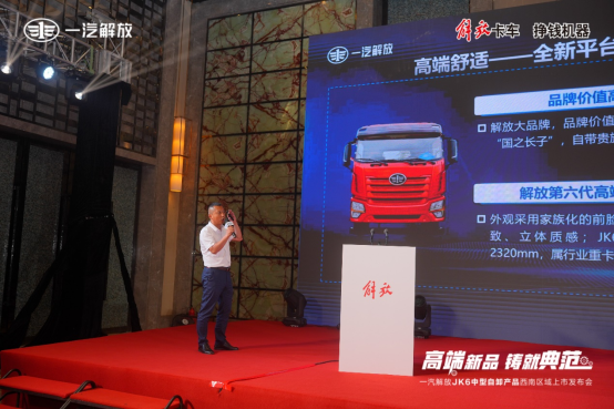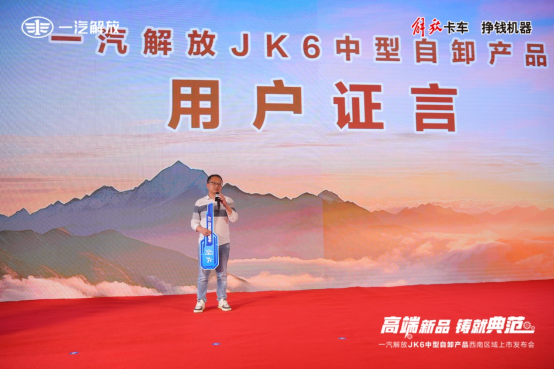 現場,首任用戶彭飛先生表示,一汽解放的大品牌,JK6的配置高,載重大,12檔變速箱比較省油,是下定決心購買的重要原因,另外JK6比較年輕審美的外觀,舒適的座椅也是比較滿意的點。