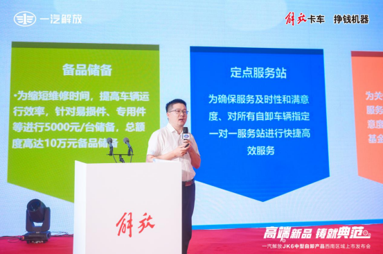 一汽解放青島中重型車銷售公司云桂地區部服務經理 張波玉進行保障服務解讀。