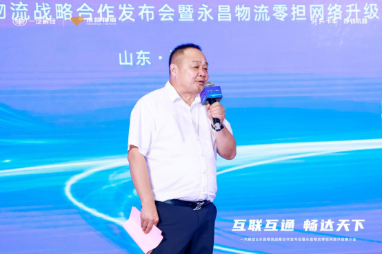 山東永昌物流集團有限公司副總裁吳昊天來到臺前,為大家介紹永昌物流零擔(dān)網(wǎng)絡(luò)升級情況,描繪出永昌物流零擔(dān)網(wǎng)絡(luò)的新生態(tài)。