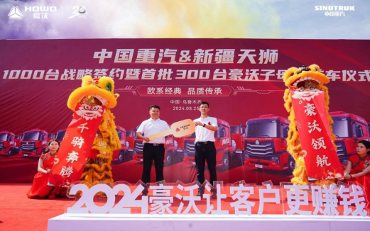 活動(dòng)現(xiàn)場(chǎng),豪沃重卡與新疆天獅的1000輛戰(zhàn)略簽約儀式與300輛豪沃子母車的榮耀交付共同鑄就了慶典的輝煌時(shí)刻。金鑰匙的傳遞,不僅是車輛所有權(quán)的交接,更是雙方信任與合作的象征。在豪沃高端高效產(chǎn)品的加持下,新疆天獅將進(jìn)一步提升煤炭運(yùn)輸效率,降低運(yùn)營(yíng)成本,為新疆乃至全國(guó)的能源供應(yīng)貢獻(xiàn)力量。