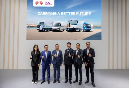 9月16日,全球商用車行業(yè)的目光聚焦于德國漢諾威,隨著2024年德國漢諾威國際交通運輸博覽會(IAA Transportation 2024)的盛大開幕,一場關于未來交通的綠色革命在這里悄然上演。作為新能源汽車領域的領航者,比亞迪不僅帶來了其純電動卡車家族的強大陣容,更首次亮相了兩款全新純電動輕型商用車——E-VALI和純電動堆場牽引車EYT 2.0,為全球觀眾帶來了一場視覺與技術的雙重盛宴,同時也為全球物流行業(yè)的綠色化發(fā)展注入了新的活力。