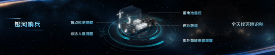 銀河7專門打造“銀河哨兵”,集成燃油防盜、蓄電池監控、非法入侵提醒等多項防護功能。比如,當檢測到物體靠近或遇到撞擊震動時,“哨兵模式”會自動報警和啟動錄像,提醒駕駛員防護并警示不法分子,從而為用戶提供“哨兵級”全天候環境識別與守護,保障人車安全。