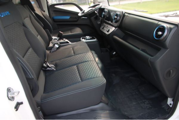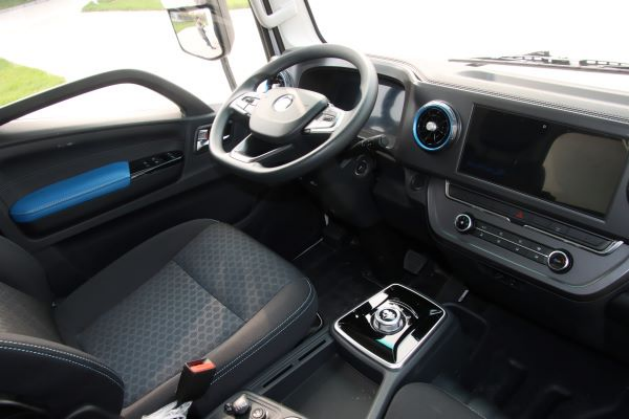 10.25寸中控大屏帶有影音娛樂(lè)功能,支持藍(lán)牙、手機(jī)互聯(lián),還集成了輔助駕駛控制功能,像全景環(huán)視系統(tǒng)、冷藏車的冷機(jī)遠(yuǎn)程控制等,以可視化和智能化的技術(shù)助力車輛高效率運(yùn)營(yíng)。
