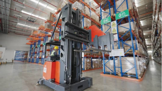 如今,林德電動三向堆垛叉車已成為了寶連通二樓倉庫中必不可少的搬運工具。蘇州市寶連通國際貨運代理有限公司倉儲主管-崔建業先生表示道:“林德三向堆垛叉車操作起來非常順手,不僅可以在狹窄的巷道內自如穿梭,而且操作靈活,有了它,工作高效多了。”