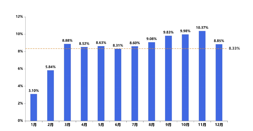 2023年分月額定噸位周轉(zhuǎn)量(來自交通運(yùn)輸部)