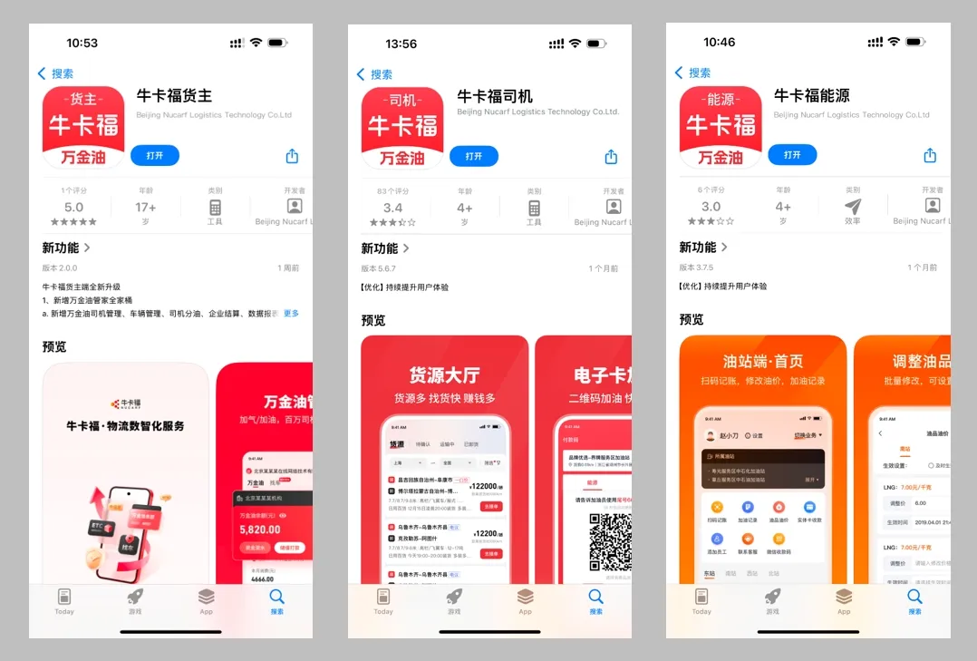 “牛卡福能源”APP:由原“萬金油油站端”升級而來,同時針對部分功能進行升級優化。未來,順應新能源發展的大趨勢,“牛卡福能源”APP將陸續增加氫能、充電、換電等服務模塊。