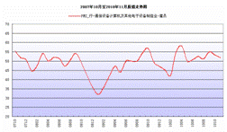11月份,通信設備計算機及其他電子設備制造業內需與出口比例指數為4.6,比上月上升2.2個百分點,與去年同期相比上升7.1個百分點;利潤趨勢指數為-2.6,比上月下降3.0個百分點,與去年同期相比下降7.8個百分點。