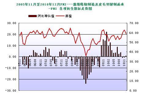 12月份,服裝鞋帽制造及皮毛羽絨制品業(yè)購(gòu)進(jìn)價(jià)格指數(shù)為65.3,比上月下降11.5個(gè)百分點(diǎn),與去年同期相比上升9.1個(gè)百分點(diǎn);采購(gòu)量指數(shù)為60.3,比上月下降7.4個(gè)百分點(diǎn),與去年同期相比下降6.5個(gè)百分點(diǎn)。