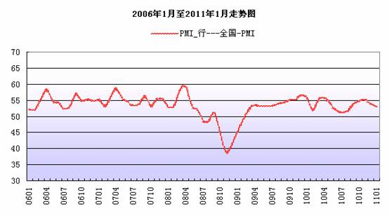 2011年1月中國制造業PMI為52.9,環比值-1.0、同比值-2.9。由于春節恰好在2月初,本月實際開工日已明顯不足,但按照工作日計算,本月又不存在春節假期,因此季節性調整無法得到精確的結果,但環比下降是必然的,這種季節性因素會持續存在于2月PMI中。本月季節性因素較為復雜。因為雖然在調查中剔除了工作日和季節因素,但傳統的春節來臨,依然對制造業生產帶來不止一個月的影響。