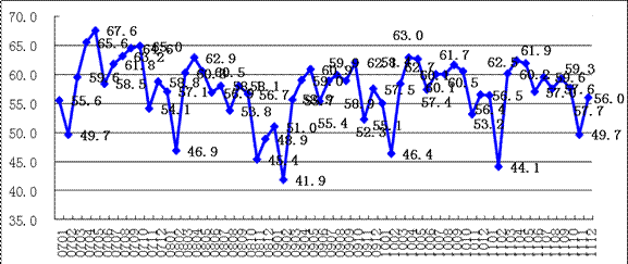 2011年12月份中國物流與采購聯(lián)合會(huì)發(fā)布中國非制造業(yè)商務(wù)活動(dòng)指數(shù)為56.0%