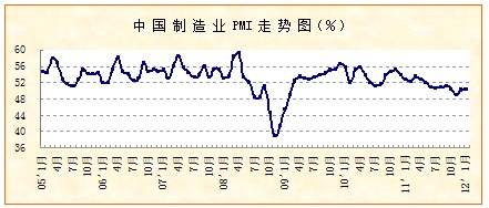 2012年1月份,中國物流與采購聯合會、國家統計局服務業調查中心發布的中國制造業采購經理指數(PMI)為50.5%,比上月上升0.2個百分點。該指數自去年以來,一直呈現波動性下行,11月份一度回落到50%以內,最近兩月持續小幅回升,顯示出經濟增速回落過程趨緩。