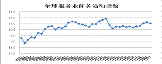 2009年1月-2012年3月全球服務業商務活動指數