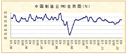 中國(guó)物流與采購(gòu)聯(lián)合會(huì)和國(guó)家統(tǒng)計(jì)局服務(wù)業(yè)調(diào)查中心發(fā)布的4月份中國(guó)制造業(yè)采購(gòu)經(jīng)理指數(shù)(PMI)為53.3%,比上月上升0.2個(gè)百分點(diǎn)。該指數(shù)經(jīng)歷連續(xù)五個(gè)月回升之后,已經(jīng)高于去年同期水平,顯示宏觀經(jīng)濟(jì)在趨穩(wěn)的基礎(chǔ)上朝著向好的方向發(fā)展。