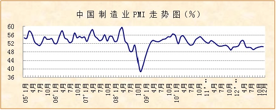 12月份,中國制造業PMI為50.6%,同上月持平。該指數自9月份以來持續穩步小幅回升,連續三個月保持在50%以上,顯示經濟溫和回升態勢基本確立,為2013年經濟運行奠定了良好開局。