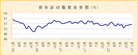 中國物流與采購聯合會、國家統計局服務業調查中心發布的2013年1月份中國非制造業商務活動指數為56.2%,連續四個月環比上升。 除該指數外,新訂單指數保持在53.7%的較高水平;新出口訂單指數連續三個月環比上升;從業人員指數基本穩定;業務活動預期指數運行在60%以上。數據變化顯示,非制造業經濟穩健運行的基本態勢繼續得到鞏固。