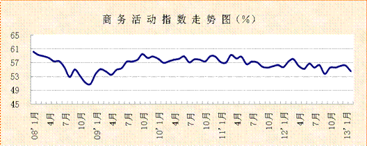 中國物流與采購聯合會、國家統計局服務業調查中心發布的2013年2月份中國非制造業商務活動指數結束了連續四個月的環比上升趨勢,較上月回落了1.7個百分點,但仍運行在54.5%的較高水平。除該指數外,新訂單和新出口訂單指數均有不同程度回落,但都運行在51%以上的水平。從業人員指數穩定在51.9%,環比小幅回升。業務活動預期指數62.7%,環比上升1.3個百分點。綜合各主要指數變化,我們認為,非制造業經濟增速雖有所放緩,但整體仍延續去年以來的較快增長格局。