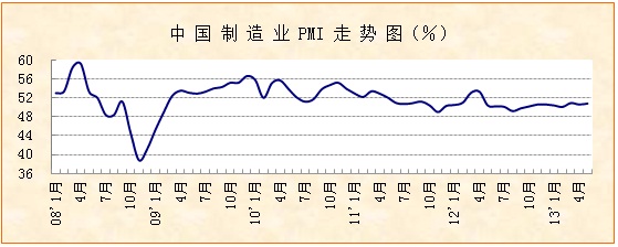 中國物流與采購聯合會、國家統計局服務業調查中心發布的2013年5月份中國制造業采購經理指數(PMI)為50.8%,比上月回升0.2個百分點,分項指數中多數指數有所回升,整體走勢好于歷史同期,顯示當前經濟運行基本態勢穩中見升。