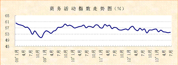 中國物流與采購聯(lián)合會、國家統(tǒng)計局服務(wù)業(yè)調(diào)查中心發(fā)布的2013年7月份中國非制造業(yè)商務(wù)活動指數(shù)環(huán)比上升0.2個百分點,回升至54.1%的較高水平。從分項指數(shù)看,新訂單指數(shù)環(huán)比持平,并持續(xù)保持在50%以上;業(yè)務(wù)活動預(yù)期指數(shù)環(huán)比上升2.1個百分點,達到63.9%,并創(chuàng)出年內(nèi)新高。數(shù)據(jù)變化表明,當(dāng)前非制造業(yè)經(jīng)濟具備良好發(fā)展的基礎(chǔ)。