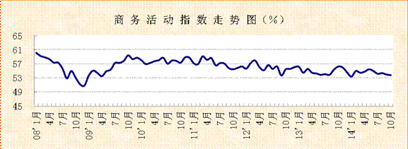 中國物流與采購聯合會、國家統計局服務業調查中心發布的2014年10份非制造業商務活動指數較上月小幅回調0.2個百分點,但仍保持在53.8%的較高水平,顯示非制造業活動增勢仍較平穩。值得關注的是,本月新訂單指數結束連續兩個月的回落走勢,較上月上升1.5個百分點,達到51.0%。創出自今年6月以來的新高。新訂單的回升預示著四季度經濟企穩回升的基礎仍然存在。