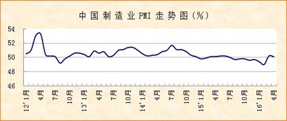 中國物流與采購聯合會、國家統計局服務業調查中心發布的2016年4月份中國制造業采購經理指數(PMI)為50.1%,較上月略微回落0.1個百分點,站穩在50%以上。指數略有回落,是數據走勢的正常波動,生產和新訂單等主要指數站穩在50%以上,供需保持擴張,多數行業保持回升,企業預期良好,總的來看當前經濟運行企穩向好基本面沒有改變,但仍不可忽視經濟下行壓力,宏觀調控仍需加強針對性,進一步鞏固經濟企穩向好基礎。