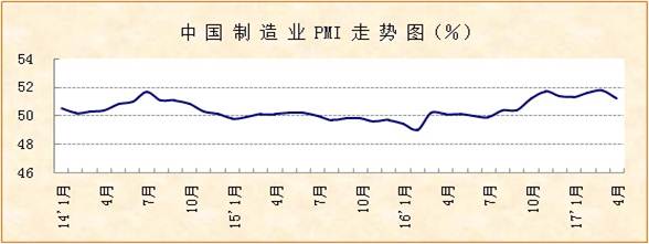 中國物流與采購聯合會、國家統計局服務業調查中心發布的2017年4月份中國制造業采購經理指數(PMI)為51.2%,較上月回落0.6個百分點,但仍連續7個月保持在相對較高水平。指數回落,主要受基礎原材料行業尤其是高耗能行業明顯下降影響,裝備制造業、消費品行業穩中有升,高技術產業保持相對較高水平。結合分項指數來看,市場價格回落明顯,有利于減輕通脹壓力;企業經營活動良好,小企業明顯回升;供需增長勢頭略有回調,但基本面沒有明顯改變。總體來看經濟運行保持平穩,結構性回調特征明顯。
